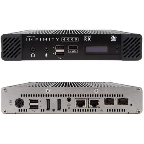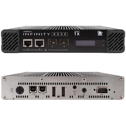 ADDERLink INFINITY 4000 es un extensor KVM con doble salida de video para distanciar monitores, teclado y ratón manteniendo una calidad de imagen perfecta con resolución 4K.