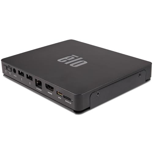 Player Android Elo Backpack. Diseñado para uso intensivo 24/7. Color negro grafito. Procesador Qualcomm Snapdragon APQ8053 Octa Core a 2.0Ghz. 2Gb de memoria DDR3L. SSD de 16 Gb. WiFi, Bluetooth 4.1, puerto LAN Gigabit RJ45, slot externo para tarjeta opcional de almacenamiento micro SD, 2 puertos USB 2.0, salida HDMI y GPIO (2 entradas y una salida, cables opcionales). Reloj en tiempo real con batería de litio-ion. Temperatura de trabajo de 0º C a 40º C. Humedad de trabajo del 20% al 80% no condensada. Conumo de 4,2 vatios. Dimensiones de ancho x alto x fondo de 165 x 136 x 24 mm. Peso de 0,53 kg. Sistema operativo incluido Android 8.1 OREO®, servicios Google Play incluidos. EloView incluida. 2 años de garantía en laboratorio ampliables hasta 5 años.