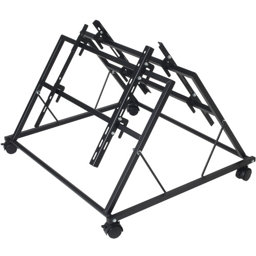 Soporte suelo dual para dos monitores desde 32″ hasta 55″. VESA desde 200×200 mm hasta 600×400 mm. Fabricado en acero pintado en negro mate. Instalación de los monitores en horizontal. Posibilidad de ajustar el ángulo en 3 posiciones. Peso máximo soportado por monitor de 25 Kg. Ruedas incluidas. Dimensiones plegado de 82 x 72 cm. Peso de 10 Kg.